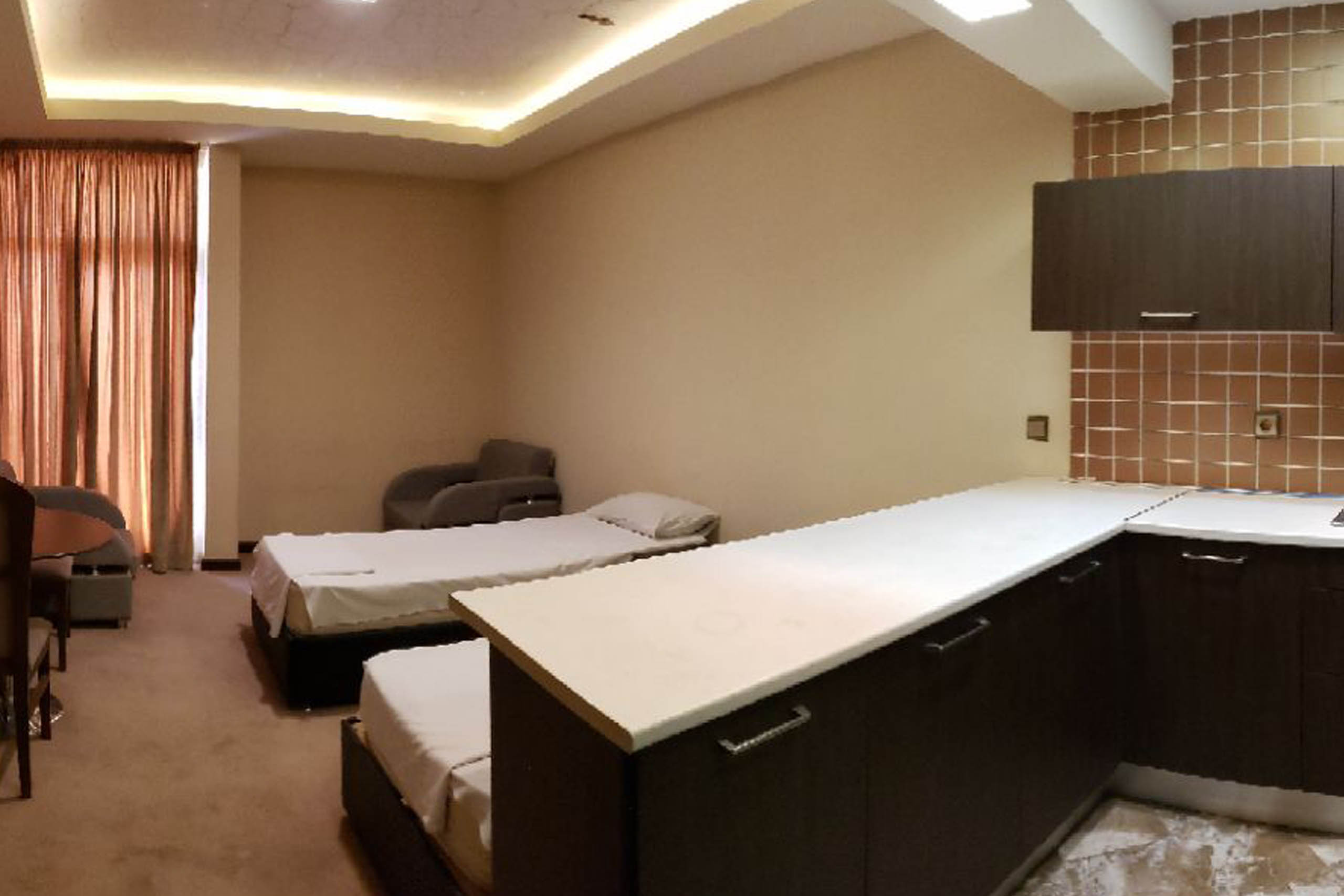 ۶ سوییت دارای یک تخت ۲ نفره ۲ تخت یک نفره همراه با دو کاناپه، آشپزخانه، سرویس و امکانات کامل و صبحانه با بوفه رایگان با سرویس فرنگی